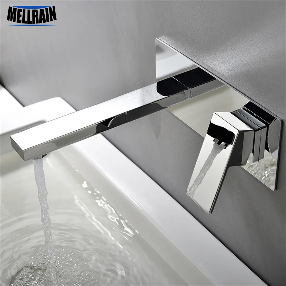 square bathroom wall mounted basin faucet brass mirror